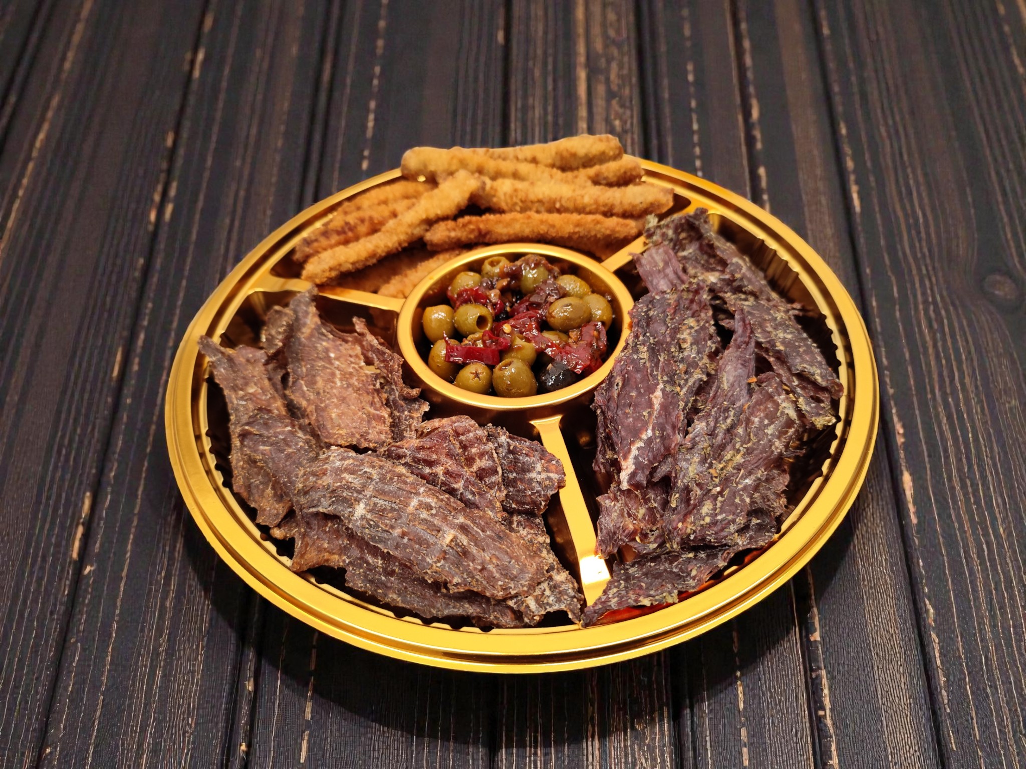Sudėtis: Džiovinta kiauliena, džiovinta jautiena, gruzdintos kiaulienos lazdelės, saldžiai aštrios