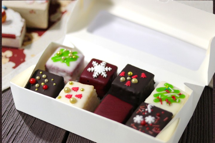 padengti balto šokolado glajumi, juduoju šokoladu ir ....