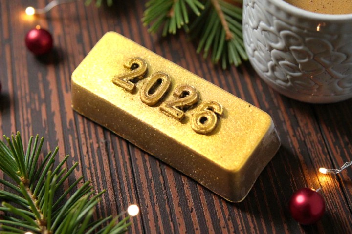 Jį sudaro 82 procentų juodasis šokoladas purkštas valgomomis aukso dulkėmis, su staigmena viduje, kurią